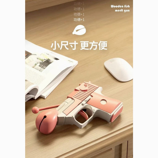 木魚功德槍 紓壓神器 解壓木魚玩具 木魚手槍 辦公室舒壓小物 解壓玩具 解壓木魚槍(粉白)